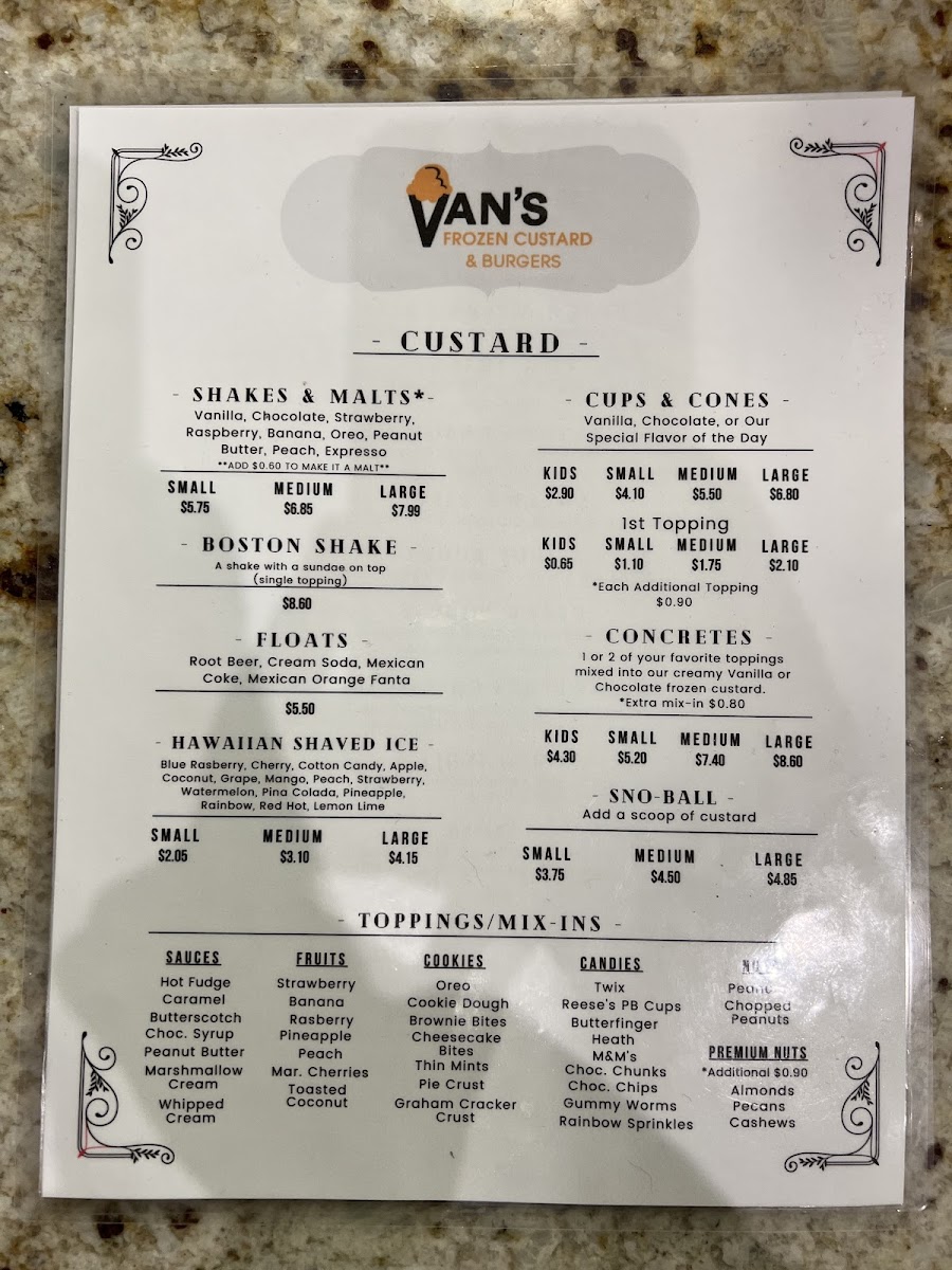 Beyond the sweet treats, Van's excels in savory delights with burgers and sandwiches made from fresh, never frozen ingredients. The Bacon Cheese Burger and Grilled Chicken Sandwich have become fan favorites, delivering bold flavors in every bite. Additional highlights include the unique variety of frozen custard options, featuring endless toppings and mix-ins, such as real cheesecake bits and Oreos. Whether you're grabbing a quick bite or savoring a delicious dessert, Van's Frozen Custard promises a cozy atmosphere and a memorable culinary experience.